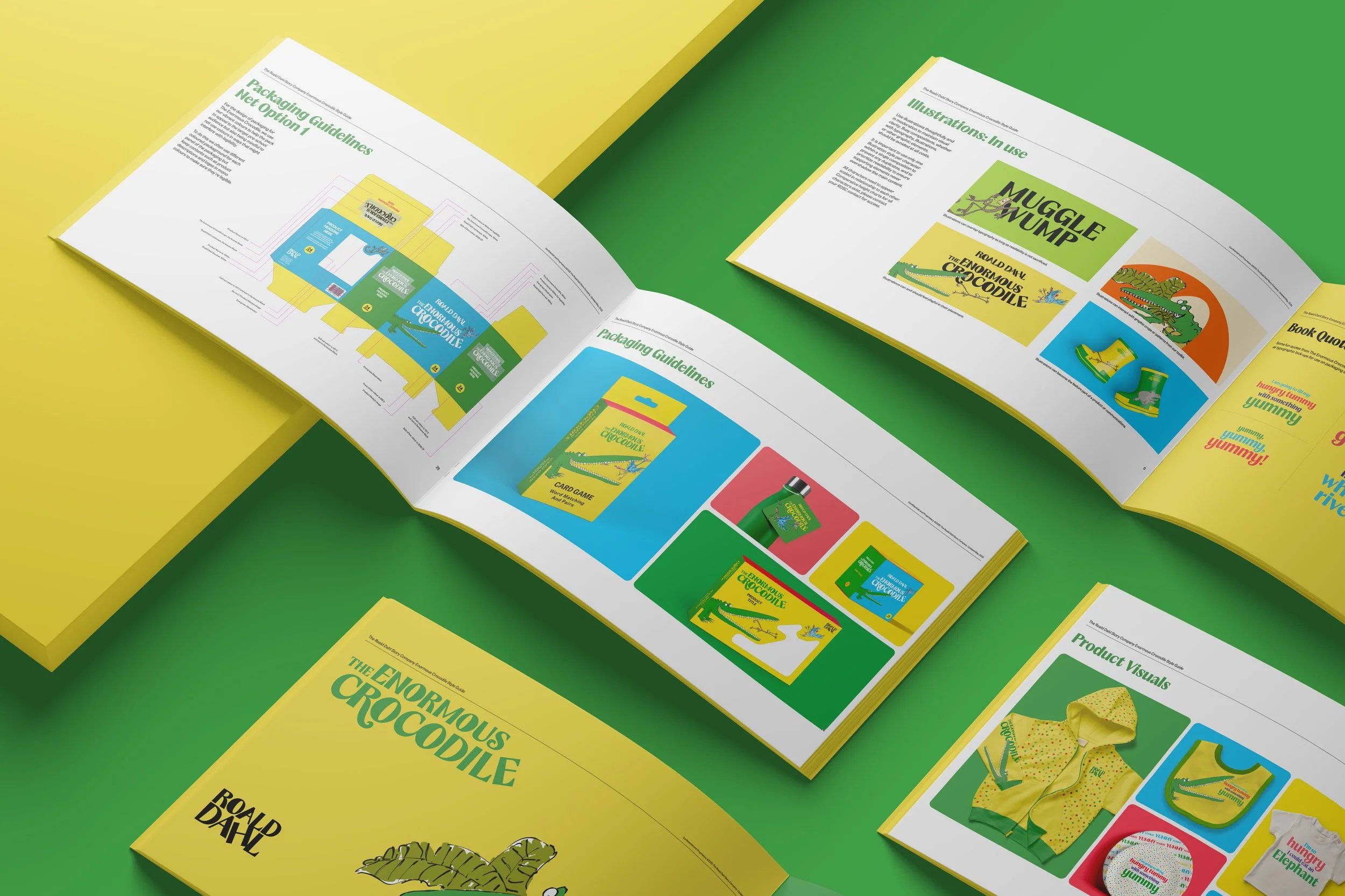 The Roald Dahl Story Company needed expanded brand work - building on Pentagram’s foundation - to appeal to a pre-school audience. Over a two-week sprint, I stress-tested, redesigned, and developed guidelines for The Enormous Crocodile series while preserving core brand elements like Fantastic Mr Font and Quentin Blake’s illustrations.